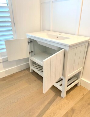 Add a touch of elegance to your bathroom with our beautifully affordable single vanity. Crafted with natural solid timber, our single bathroom vanity is designed to give you everything you need in a stylish yet simple vanity. You can choose to add a designer marble top and basin, as well as a matching mirror.