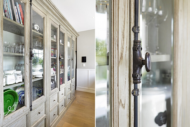 At a closer look, the delicate details include vintage external cupboard locks, chicken mesh door infills as well as curves to the corners of the island for a smooth and streamline feel.